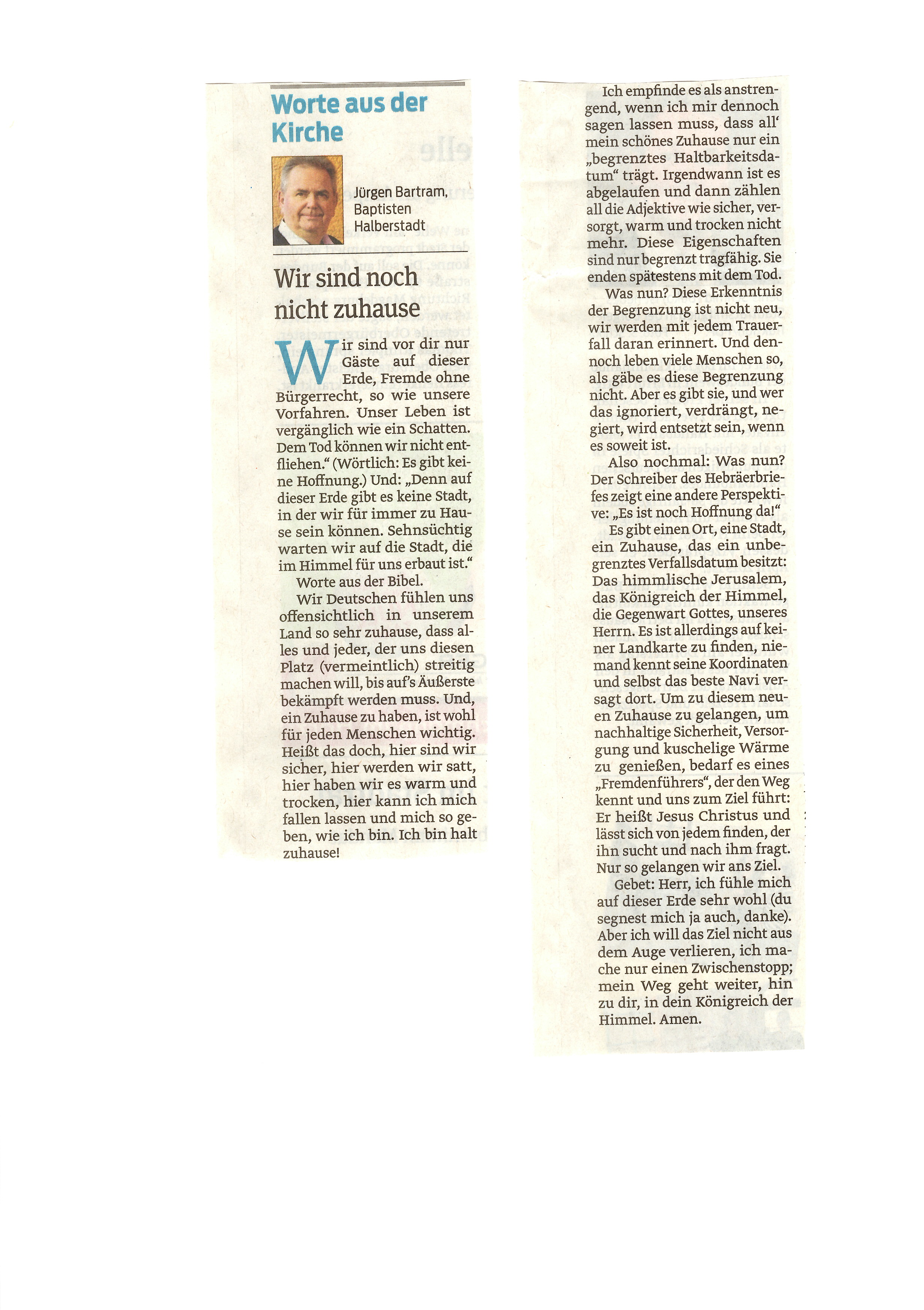 Jürgen Bartram Volksstimme Worte aus der Kirche